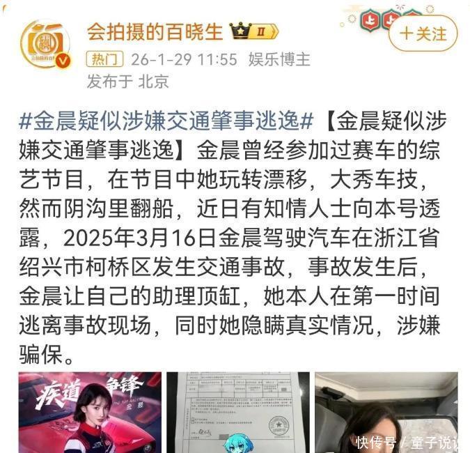 其实吧,这种沉默未必是怂,反倒像在等一个准信儿。要是最后查出来她真没想跑,那这“狗仔”怕是要吃官司咯。再说了,金晨手里攥着那么多代言和待播剧,犯不着为点小钱把自己前途搭进去呀?她又不傻,分得清轻重缓急。 现在焦点全落在她那位助理身上了。金晨方一直强调,助理是留下来等交警的,不是替她顶包。要是这话属实,那她这波危机大概率能扛过去。至于保险那些琐碎事儿,八成也是助理一手操办,金晨当时忙着赶工,未必件件过问,中间有点误会也正常。